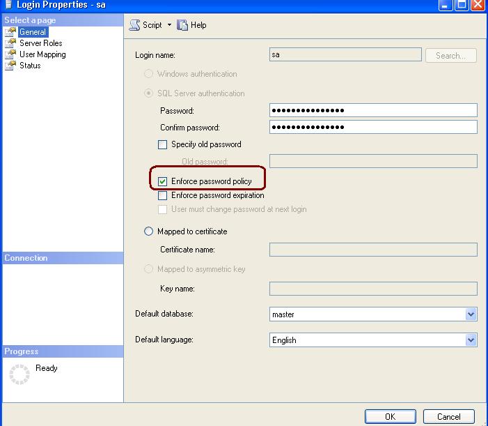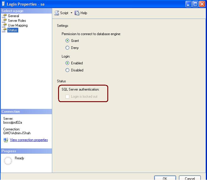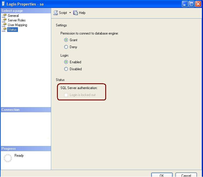 Login failed for user ‘sa’ because the account is currently locked out. The system administrator can unlock it.