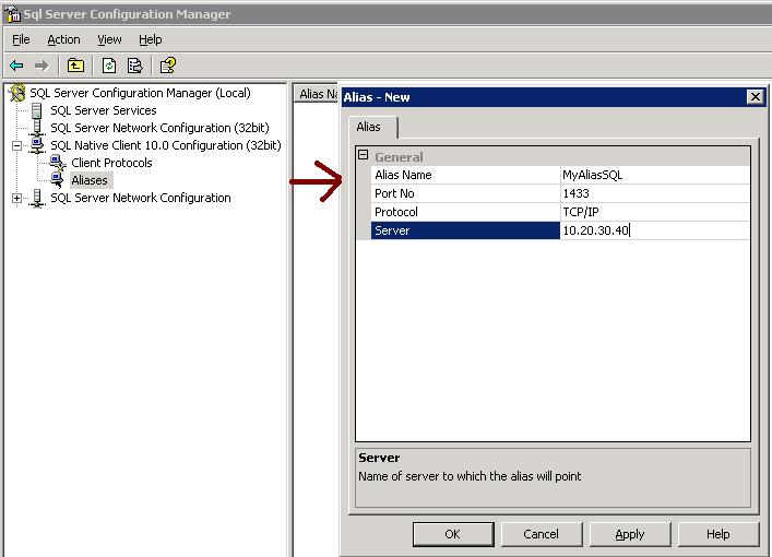 Go to SQL Server Configuration manager – Go to SQL Native Client -> Right Click and SELECT New Alias from the popup window.