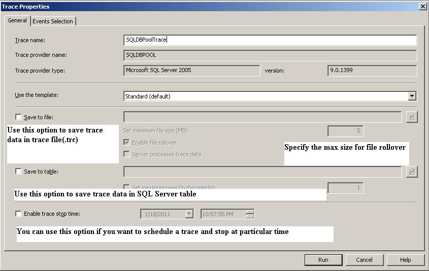 Template is the default configuration for a trace. It includes the event classes that are required for monitoring.