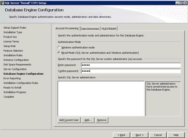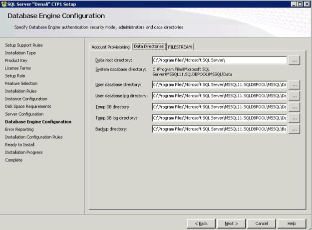 Step 15: Specify the Authentication Mode, Data Directories and File Stream