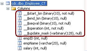Below 5 additional columns are available into cdc.dbo.Employee_CT table.