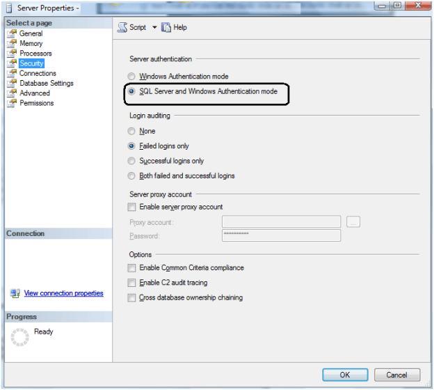 1. SQL Server authentication mode is Windows Only