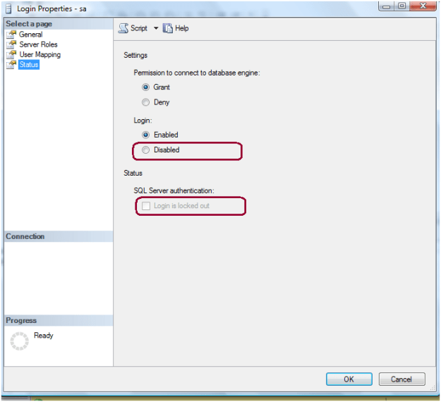 2. SA Account is disable