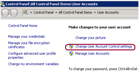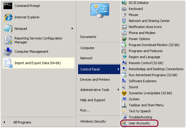 Step 1: Go to Start -> Control Panel -> User Accounts