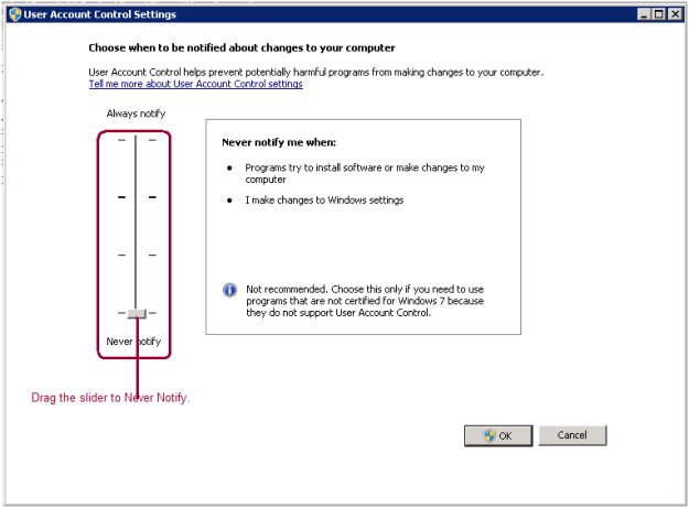Step 3: Drag the slider to never notify and it will fix the issue.