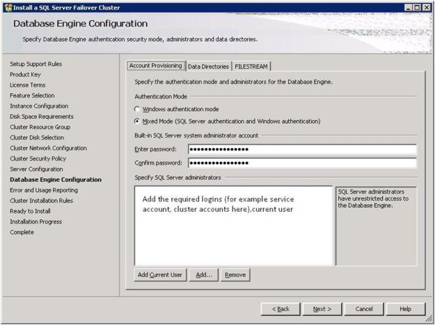 Mixed Mode Authentication: Mixed mode enables both Windows Authentication and SQL Server Authentication. SQL Authentication means SQL Login, Password etc will be managed by SQL Server its self by storing the login info into SQL Server Master database.