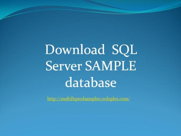 Link to download Sample SQL Server Databsae Leave a reply Click Me to download sample database Share this: Click to share on Facebook (Opens in new window) Facebook Click to share on Tumblr (Opens in new window) Tumblr Click to share on LinkedIn (Opens in new window) LinkedIn Click to share on Reddit (Opens in new window) Reddit Click to print (Opens in new window) Print Click to share on X (Opens in new window) X Click to email a link to a friend (Opens in new window) Email Click to share on Pinterest (Opens in new window) Pinterest Like Loading... Related