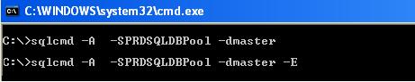 -E argument is for windows connection with integrated security true